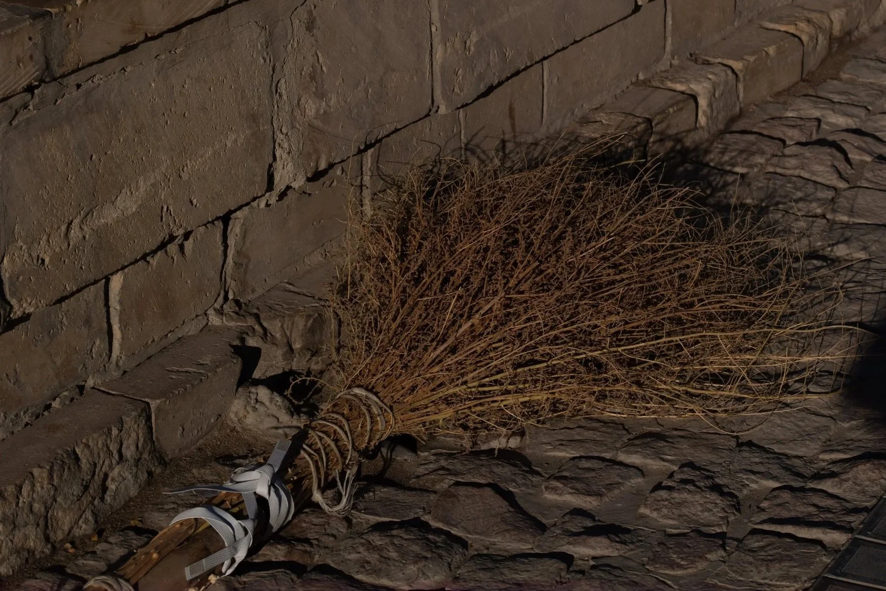 The broom is a harmonious thing, the head, rope and tail bound to serve a common goal. Through the broom, acts of care and creation, within these grand narratives, expose our vulnerabilities and our inescapable corporeality. Though made romantic and sublime as they undergo a crafting process, brooms exist to elevate our base materiality and thus never absolutely escape their functional capacity. The very thing that cuts off the object from its materiality is the thing that brings it to life. We are made ordered and whole through the mundane.